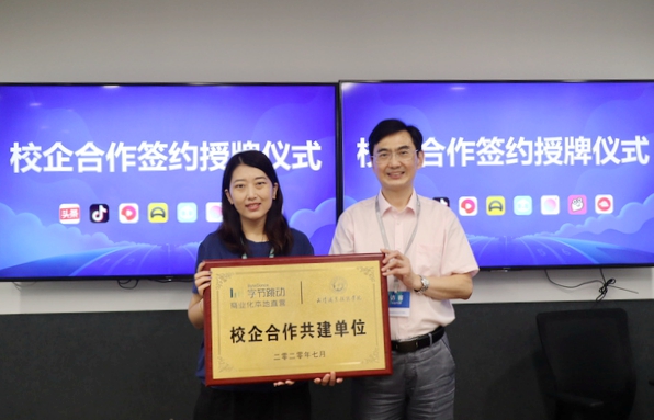 签约后,北京巨量引擎网络技术有限公司授予我校“校企合作共建单位”匾牌。