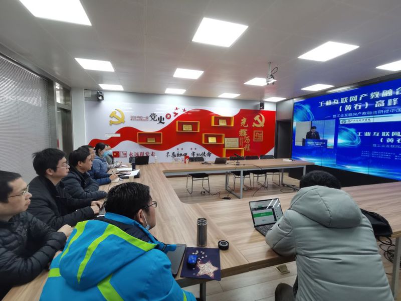 武职网讯(通讯员徐爱胜)1月8日,工业互联网产教融合创新发展(黄石)高峰论坛在湖北工程职业学院开幕,论坛以视频会议方式召开,我校在信息化办公室设立分会场。副校长李望云、合作发展处处长杨忠旭、教务处副处长夏光蔚以及相关专业负责人参加了论坛。