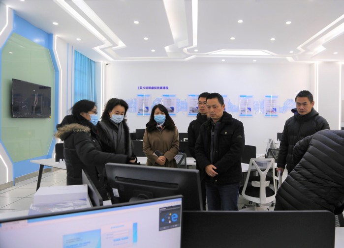 洽谈会后,王琼一行参观了学校电信学院高水平专业群光电芯片智能制造“芯火”实训基地、纺服学院服装展示厅、服装3D仿真工作室、服装表演厅。