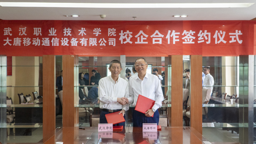 武职网讯(通讯员 徐爱胜 摄影 许昌顺)10月13日上午,武汉职业技术学院与大唐移动通信设备有限公司校企合作签约仪式在逸兴楼举行。武汉职业技术学院党委书记、校长李洪渠,大唐移动通信设备有限公司副总裁马军出席会议并代表校企双方签署合作协议。签约仪式由副校长郭沙主持。