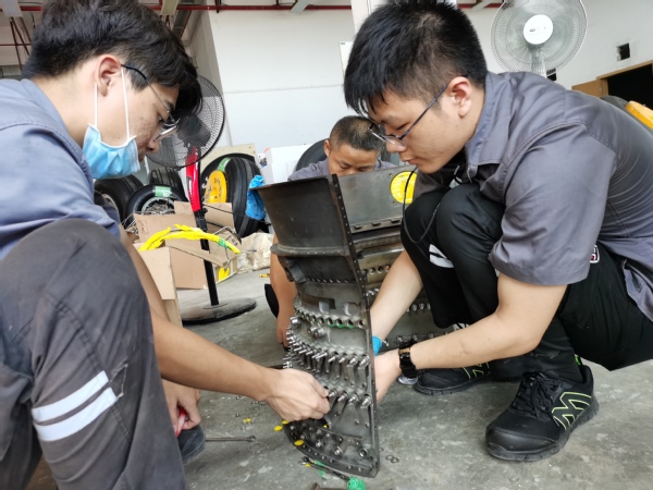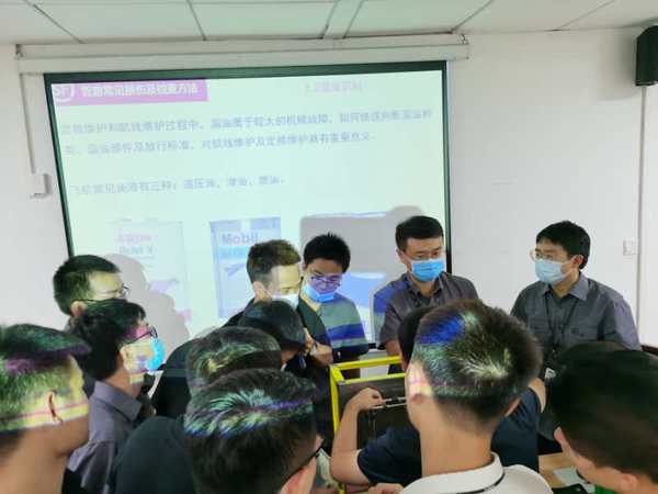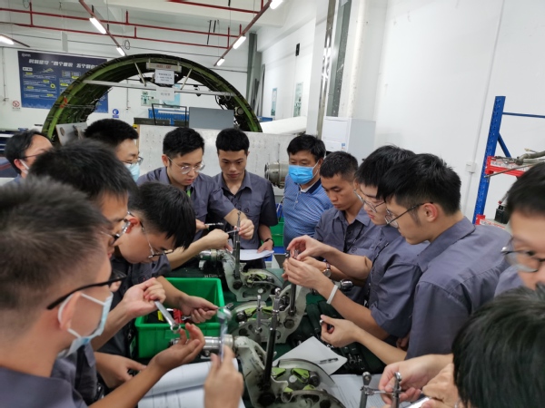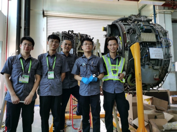 检验培训效果最好的方法就是实践,订单班部分学员在培训老师带领下,利用周末休息时间参加飞机发动机的组装工作。发动机是飞机的心脏,结构复杂、部件精密、安装工艺要求高,必须严格按照厂家手册施工。发动机组装是一项技术含量极高的工作,对成熟技术人员来说也是一种挑战,四位订单班学员在师傅指导下边学边做。在圆满完成任务后,学员们深感飞机技术的深奥复杂,更加坚定了刻苦专研、勇攀技术高峰的决心。