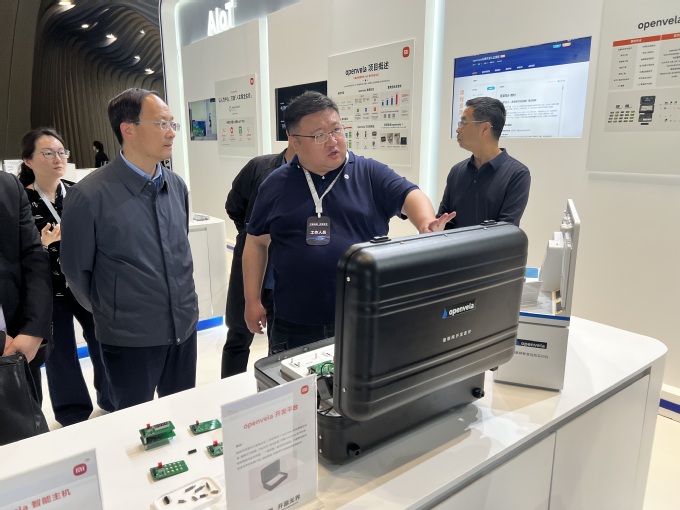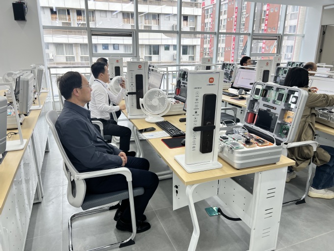 四川成都基地是小米布局全国的第三座产教融合基地,与江苏常熟、河南开封的基地形成战略联动。该基地全面引入小米集团的技术标准、人才认证体系与品牌生态资源,通过“实训+认证+就业”一体化模式,定向培育智能制造、人工智能、具身智能等领域的紧缺人才。杨旭东一行重点参观了基地的“4800㎡教学实训基地+1200㎡AIoT互动体验中心”,深入了解了基地依托小米“人车家全生态”战略,将企业真实产品、核心技术、岗位标准直接嵌入教学环节的先进运作模式。在软件工程师实训室,杨旭东还现场体验了小米自研的openvela开源操作系统,围绕嵌入式软件开发人才培养方向与现场专家进行交流。
